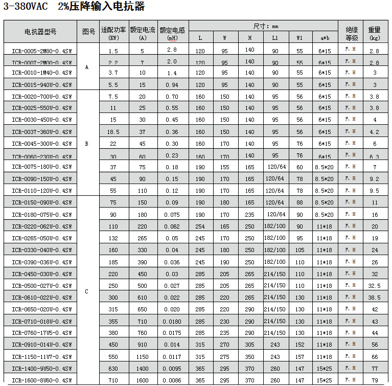 安装在变频器输出端,用于限制变频器与电机连接电缆的容性充电电流,钝化变频器输出的PWM波的电压上升率。电机电缆长度超过一定值时,建议在变频器与电机之间插入一个电机电抗器用于补偿在长导线时的电容再充电电流。此长度决定于变频器的额定值以及电机电缆的类型。