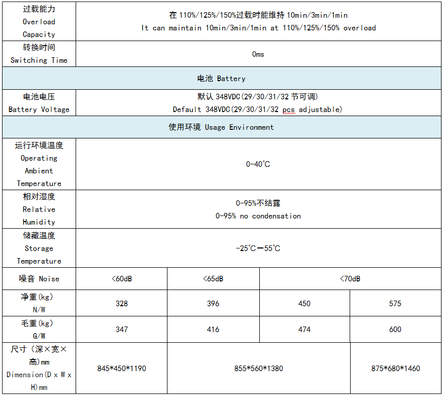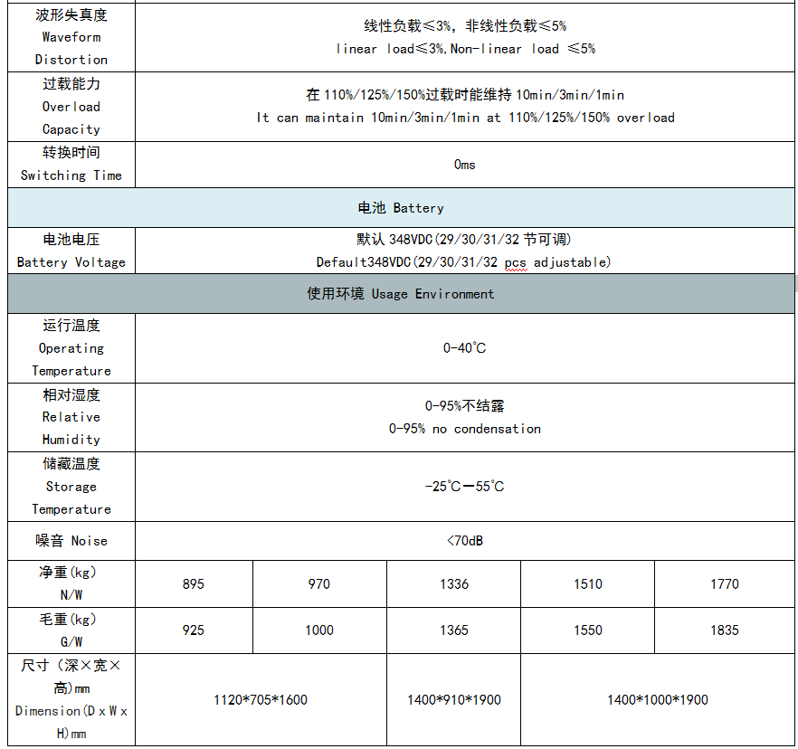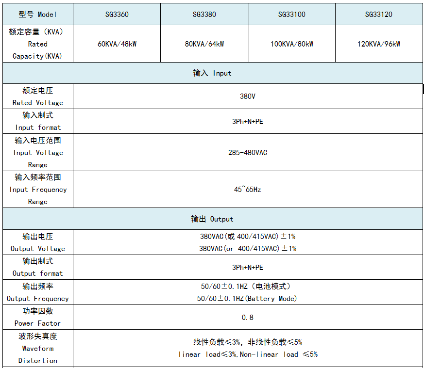 60-400KVA系列UPS主输入电源和旁路电源可分离,可分别将两路不同的市电接入UPS以提高输出电源供电的可靠性。双变换在线式拓扑结构设计,UPS的输出为纯净正弦波,使UPS对用户设备提供更为完美的保护.